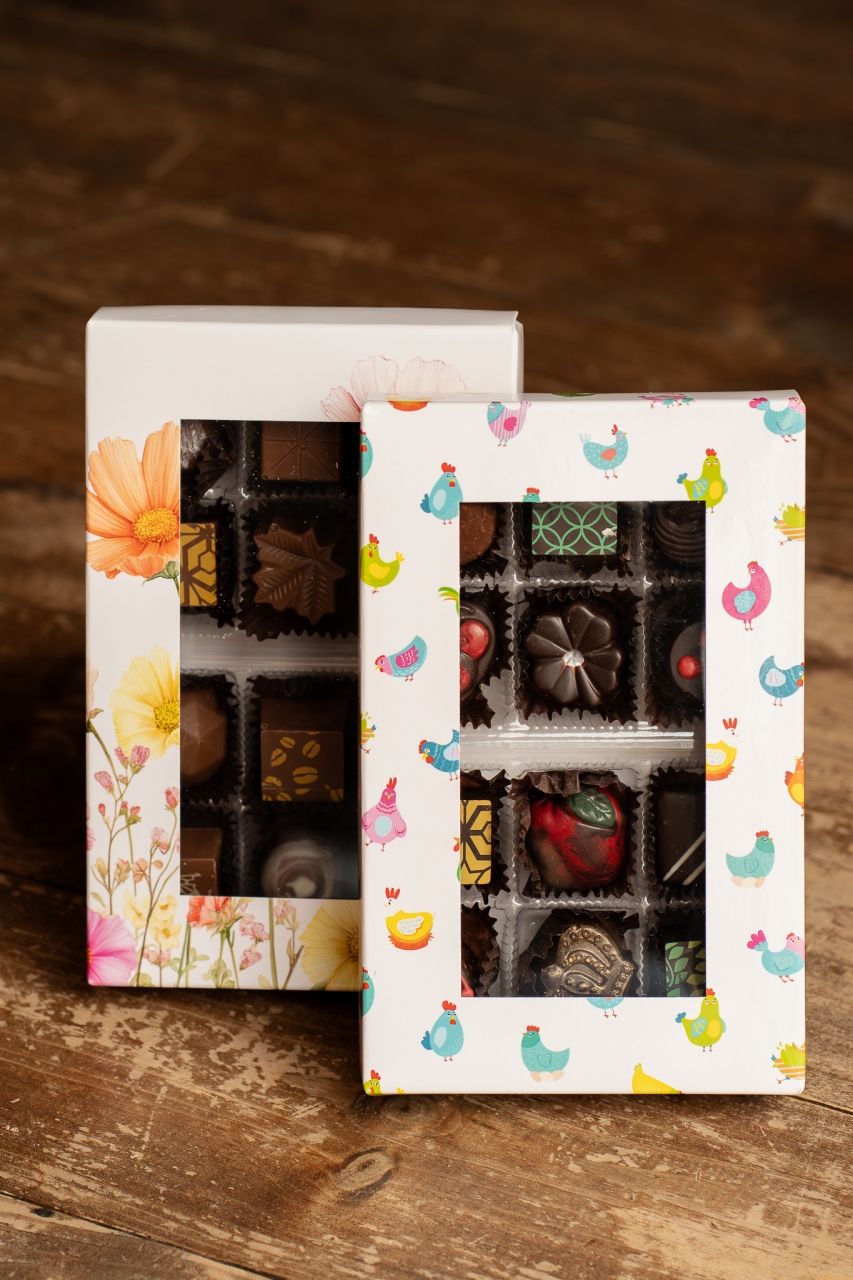 Découvrer nos magnifiques coffret de chocolats fins aux couleurs du printemps.